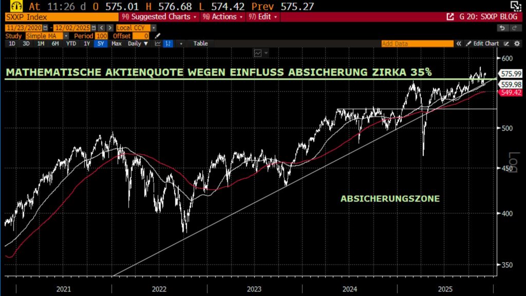 Aktuelle Ausrichtung des Fonds: 100% Absicherung ab Start Absicherungszone bei 567,52 Indexpunkten (Durchschnitt aller Basispreise der gekauften EUREX STOXX Europe 600 Absicherungsoptionen)