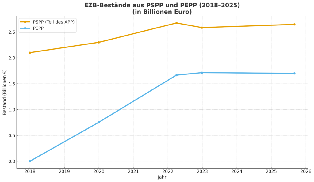 EZB-Bestände aus PSPP und PEPP (2018-2025) Quelle: TimmInvest