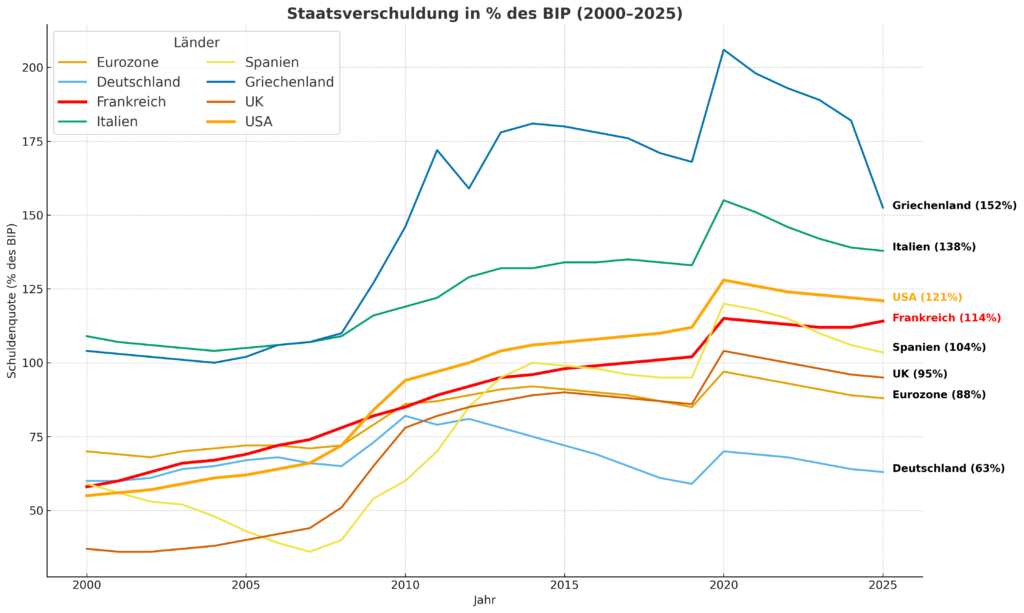 Staatsverschuldung in % des BIP (2000-2025) Quelle: TimmInvest