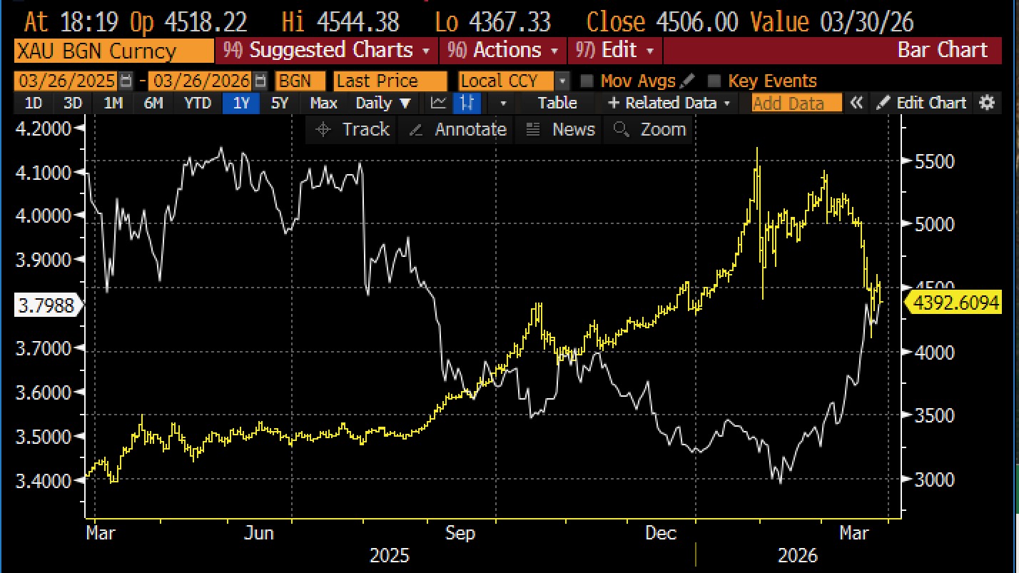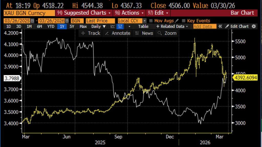 Gold sollte in einem Umfeld geopolitischer Eskalation eigentlich steigen. Genau das ist die etablierte Marktlogik. Doch aktuell passiert das Gegenteil. Seit dem Ausbruch des Konflikts steht Gold unter Druck – parallel zu steigenden Zinsen. Der Markt beginnt damit, nicht nur Unsicherheit, sondern einen strukturell höheren Inflations- und Zinsausblick einzupreisen.