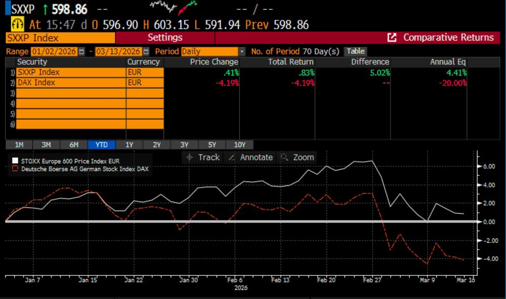 Vergleich DAX und STOXX Europe 600 seit Jahresanfang, Quelle: Bloomberg