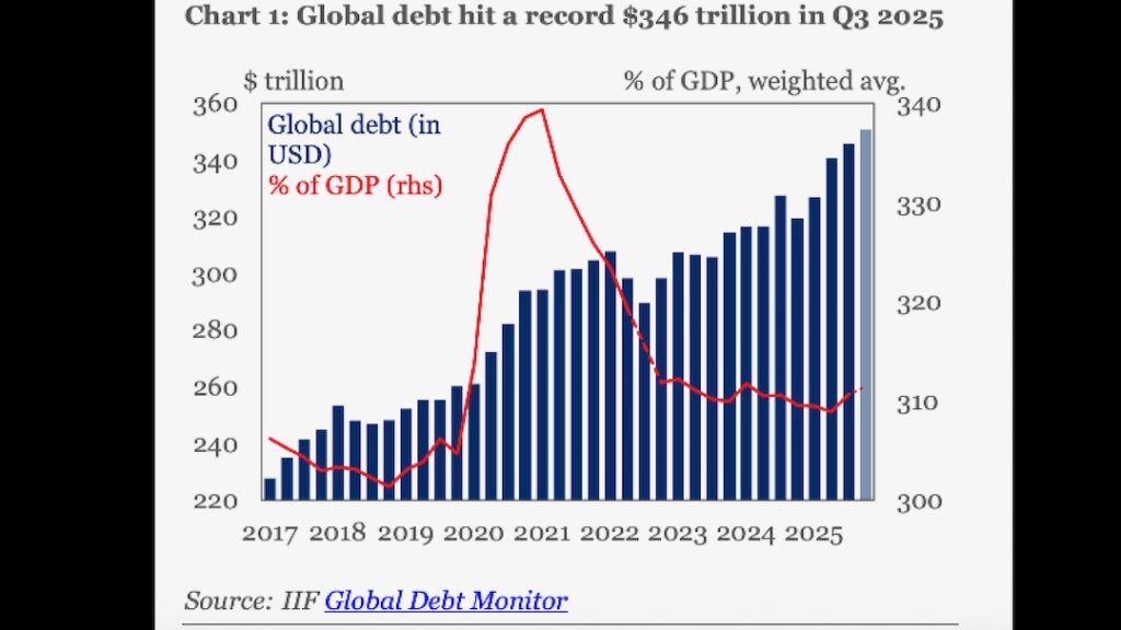 Die weltweite Verschuldung ist laut IIF im dritten Quartal um weitere 8 Billionen USD gestiegen und liegt nun bei 346 Billionen USD – ein historischer Höchststand.